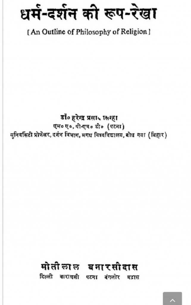 यह पुस्तक धर्म दर्शन से जुड़ी विभिन्न समस्याओं का तुलनात्मक एवं आलोचनात्मक अध्ययन प्रस्तुत करती है।लेखक ने दर्शन शास्त्र विषय के छात्रों को ध्यान में रखते हुए विश्वविद्यालय में स्नातक और स्नातकोत्तर स्तर पर पढ़ाये जाने वाली धर्म-दर्शन से सम्बंधित विषय-वस्तु को एक पुस्तक में समाहित करने की सार्थक कोशिश की है।इस पुस्तक के दो खंड हैं। पहले खंड में 22 अध्याय और दुसरे खंड में 11अध्याय हैं। आप यह पुस्तक नीचे दिये लिंक से डाऊनलोड कर सकते हैं। https://epustakalay.com/book/14899-dharm-darshan-ki-roop-rekha-by-harendra-prasad-sinha